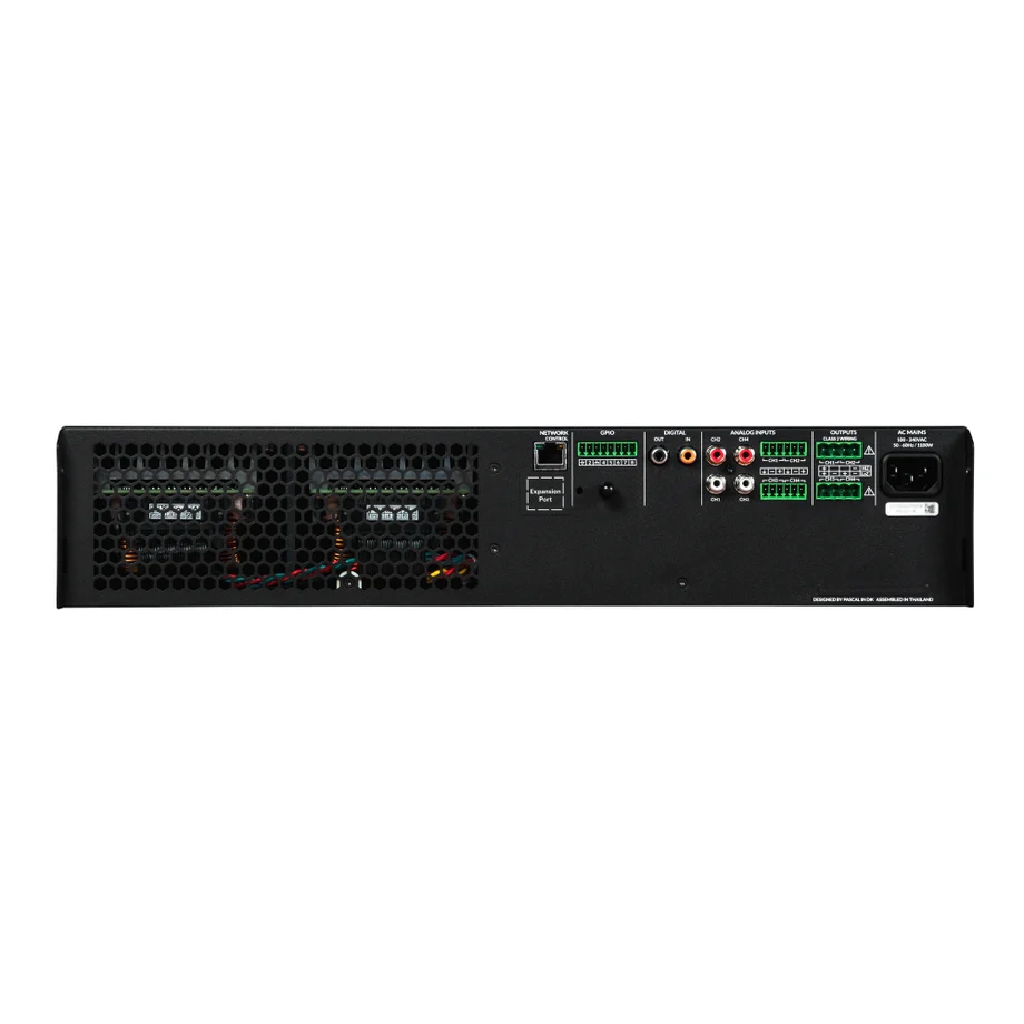 Con una potenza totale di sistema di 2000 W, supporta configurazioni Lo-Z (2Ω / 4Ω / 8Ω) e linee distribuite 70V / 100V, consentendo la gestione di sistemi multi-zona ad alta densità di diffusori o applicazioni con carichi impegnativi.