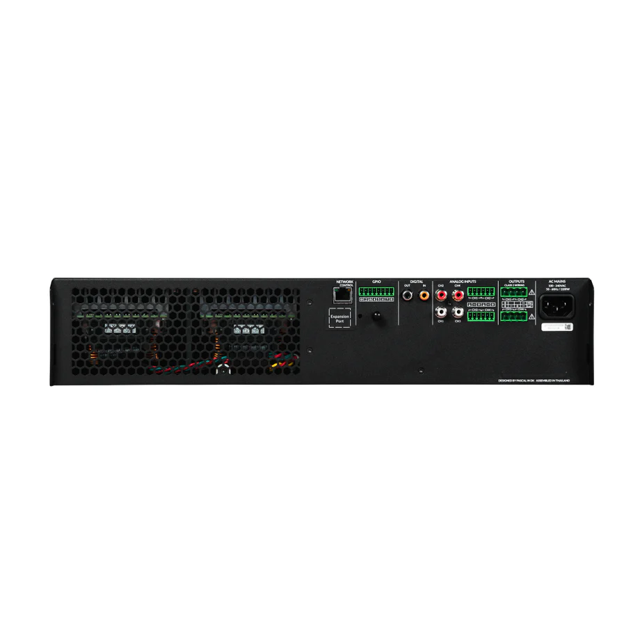 Questa versione non include Dante™, risultando ideale per installazioni con distribuzione audio analogica o sistemi centralizzati tradizionali.
