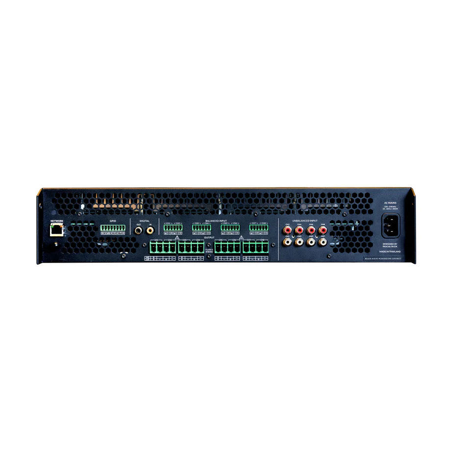 PowerZone Connect 4008 è un amplificatore professionale in Classe D a 8 canali con DSP integrato, pensato per installazioni AV multi-zona ad alta potenza. Con 4000 W di potenza totale, è adatto a impianti hospitality, corporate e retail di scala media-grande.