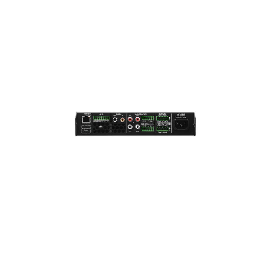 Con una potenza totale di sistema di 500 W, consente configurazioni Lo-Z (4Ω / 8Ω) e linee distribuite 70V/100V. Il sistema di power sharing dinamico permette la distribuzione intelligente della potenza tra i canali in funzione del carico e dell’applicazione.